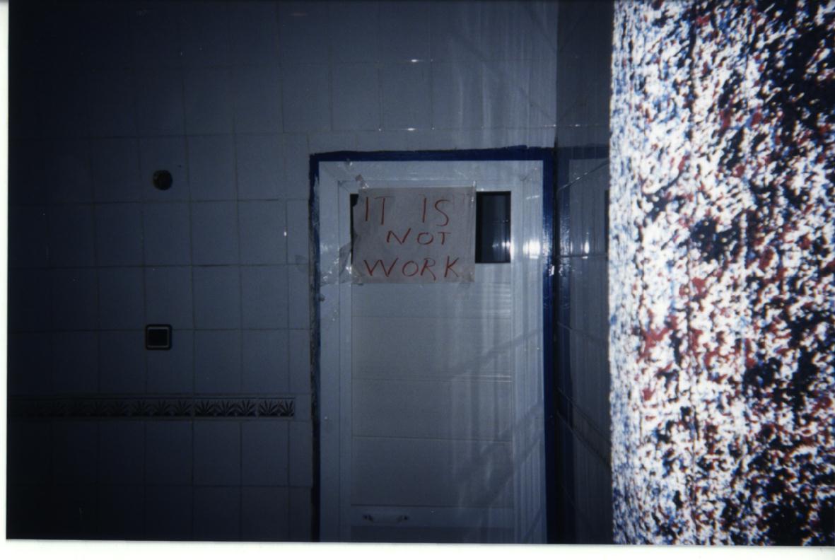 The famous toilet scene. What's Deno hiding behind the magic door?